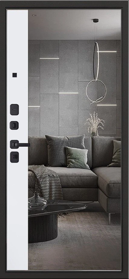 Надежная входная Дверь Scandi с зеркалом премиум класса по цене 45 023 руб. Большая толщина стали защитит от проникновения в ваш дом, квартиру или коттедж. Используется очень качественная фурнитура: замки, цилиндры, ручки, защелки. Покрытие и отделка двери изготовлено под внимательным контролем производителя. Дверь имеет долгий срок службы и гарантию.