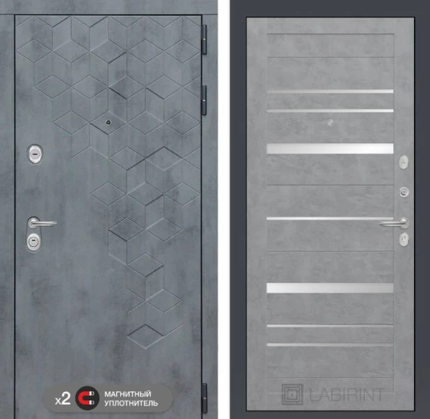 Дизайнерская входная Дверь Бетон класса Люкс с несколькими листами стали, звукоизоляцией и теплоизоляцией. Утепленный короб и полотно защитят от сквозняков и шумов. Модель не только надежная, комфортная, защищенная и высочайшего качества, но и очень красивая! Будет отлично сочетаться с интерьером дома, квартиры или офиса. Сейчас действует выгодное предложение по цене: 55 423 руб.